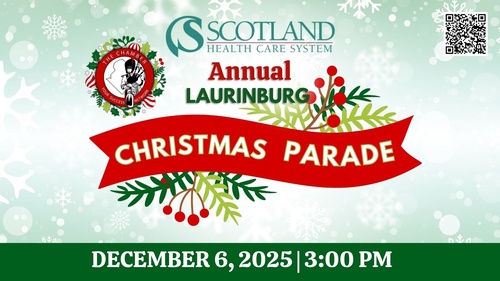 Be a part of the tradition and kick off the Holiday's with the Annual Laurinburg Christmas Parade The Parade is held Annually the 1st Saturday in December. The 2025 parade will be Saturday, December 6, beginning at 3:00pm.